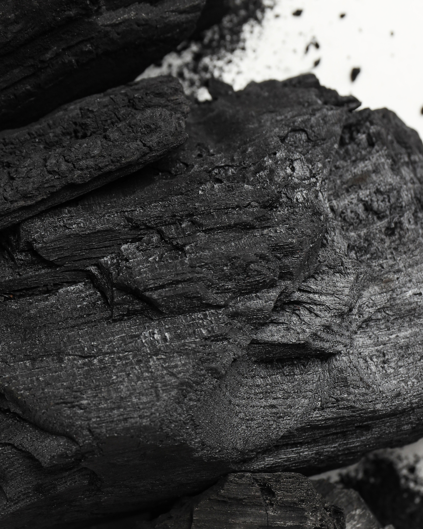 Charcoal's porous structure and negative charge allows it to absorb up to 1,000 times its weight in impurities, removing product build-up and allowing hair to absorb nutrients that promote growth and shine.