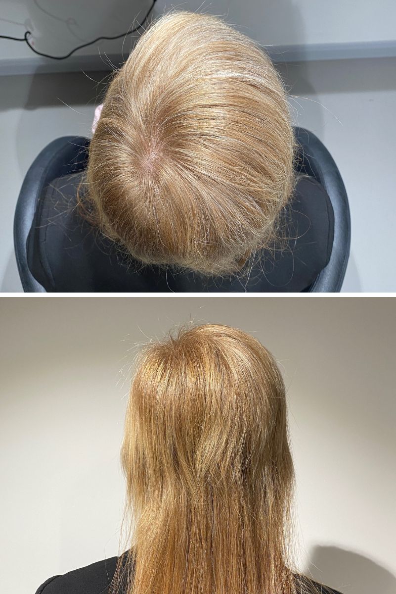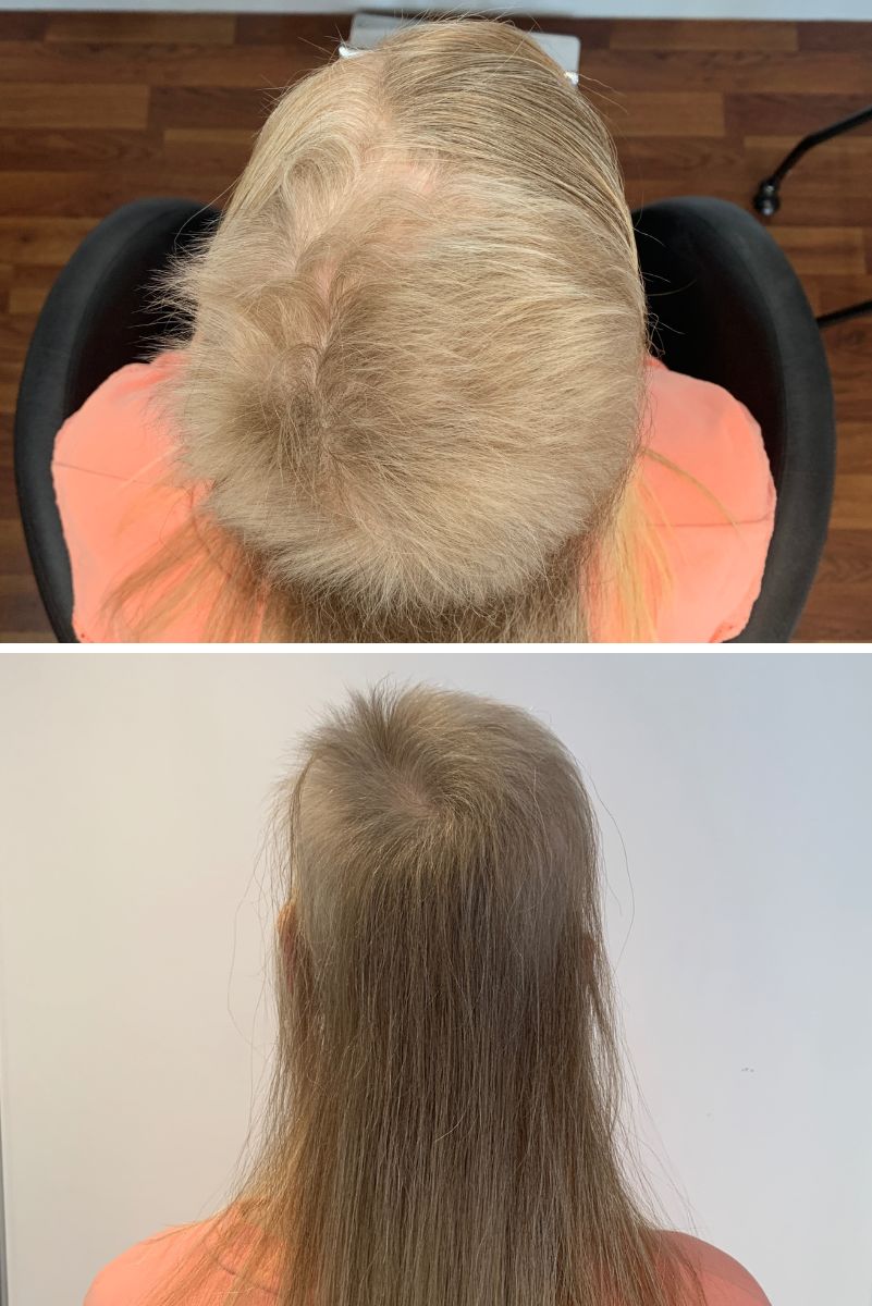 "Before using the products my scalp was incredibly inflamed and hurt to touch. I had lost nearly 60% of my hair and what was left was very thin and dry. My scalp started to feel instantly better once I had started using the shampoo and conditioner, the minty ingredients had an instant cooling effect and the smell is lovely and refreshing. After only 2 weeks I noticed some regrowth in areas that were completely bald. I have been using the system for around 6 months now and my hair feels thick and healthy and it is growing at a phenomenal rate."